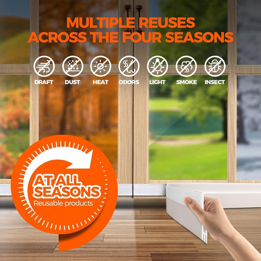 Reusable Door Draft Stopper 41 Inch, Door Stoppers for Bottom of Door, Weather Stripping Door Seal, Strong Adhesive under Door Draft Blocker for Interior & Exterior Doors, White