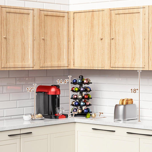 Rotary Coffee Pod Capsules Carousel Holder Organizer Compatible with 40 Nespresso Vertuoline Capsules (Black)