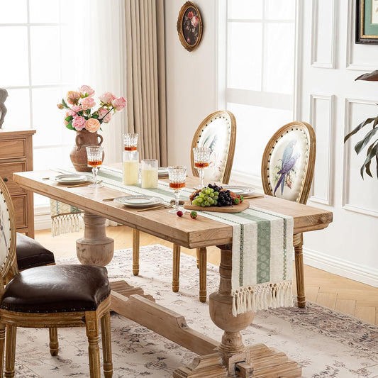 Sage Green Table Runner 72 Inches Long Boho Macrame Tassels
