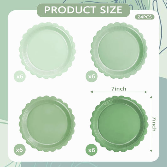 Sage Green Gradient 7 Inch Disposable Paper Plates 24 Pack