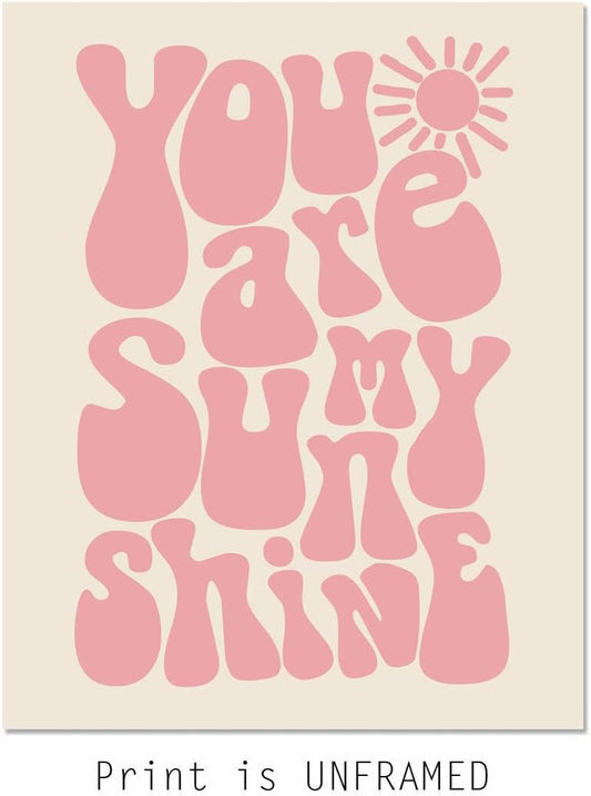 You Are My Sunshine Kids Room Print Pink Boho 11x14 Unframed