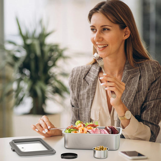 Stainless Steel Bento Lunch Box for Adult, 42Oz Leak-Proof Lunch Box Containers, Microwave-Safe, with Adjustable Divider, Convenient Metal Lunchbox for Work, Travel