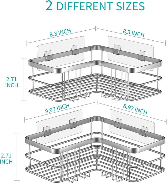 Shower Caddy 2 Pack,Adhesive Shower Organizer for Bathroom Storage&Home Decor&Kitchen Organizers and Storage,No Drilling,Large Capacity,Rustproof Stainless Steel Bathroom Organizer,Bathroom Decor Sets
