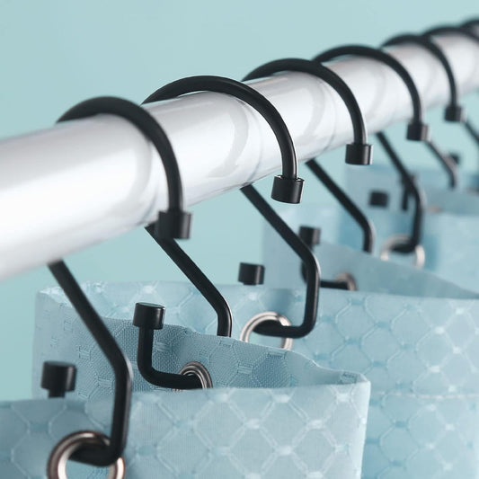 Shower Curtain Hooks, Black Rust Proof Non-Slip Double Hooks for Shower Curtain, Sturdy Metal Rings Bathroom 12Pcs