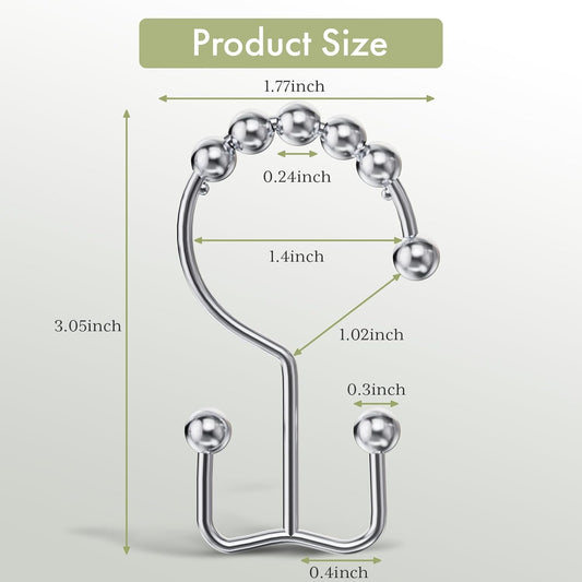 Shower Curtain Hooks Rings, Rust-Resistant Stainless Steel Double Shower Curtain Hooks, Shower Hooks for Shower Curtain and Liner Bathroom, Set of 12, Chrome
