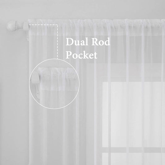 White Sheer Window Curtains 2 Panels 54x84 Rod Pocket
