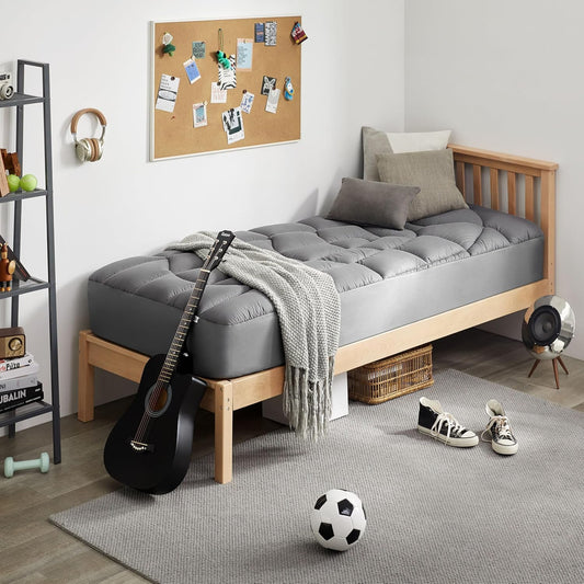 Twin Mattress Pad Waterproof - Ergonomic Quilted Fitted Twin Mattress Topper, 5-Layers Noiseless Washable Mattress Protector Cover with 8"-21" Deep Pocket (Grey, 39X75)