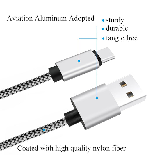 USB C To USB A Nylon Braided Cable 10ft 3 Pack Fast Charge