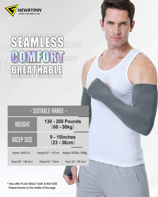 UV Sun Protection Arm Sleeves with Thumb Hole for Men Women Youth, Cooling Sleeve to Cover Tattoo, Mid-Compression