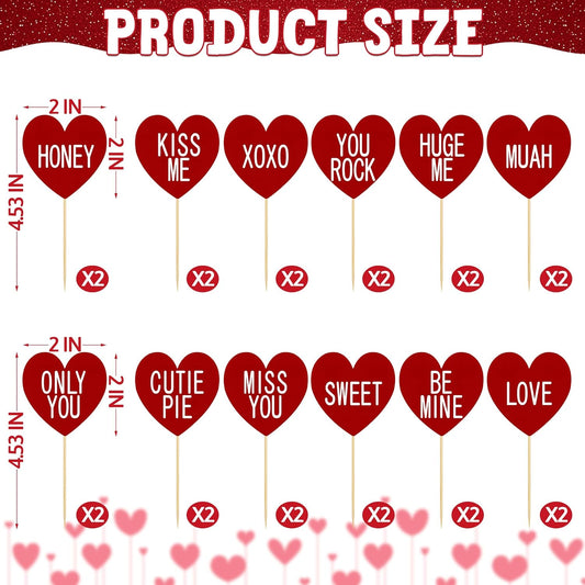 Valentine Cupcake Toppers 24 Pcs Red Love Kiss Me Hearts