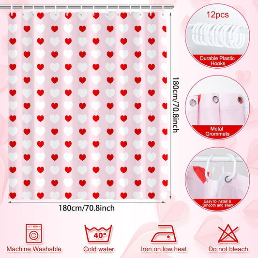 Valentines Day Shower Curtain 71x71 Inches Hearts Waterproof