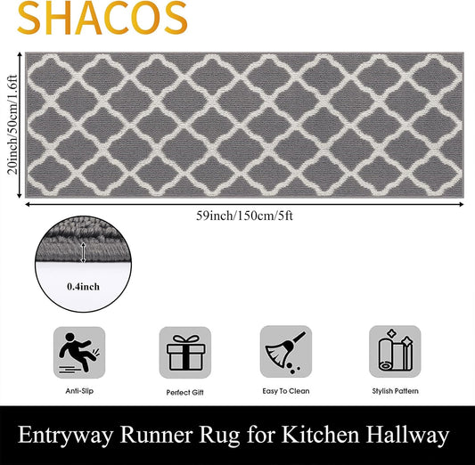 Washable Runner Rug 20x59 Dirt Traps Non Slip Backing Gray