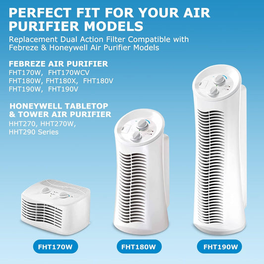 2 Pack for Febreze Air Purifier Replacement Filter Dual Action Hepa-Type FRF102B, Models FHT170, FHT180, FHT190 and Fit for Honeywell Hepaclean U Filter HRF201B, Part #HHT270W & HHT290