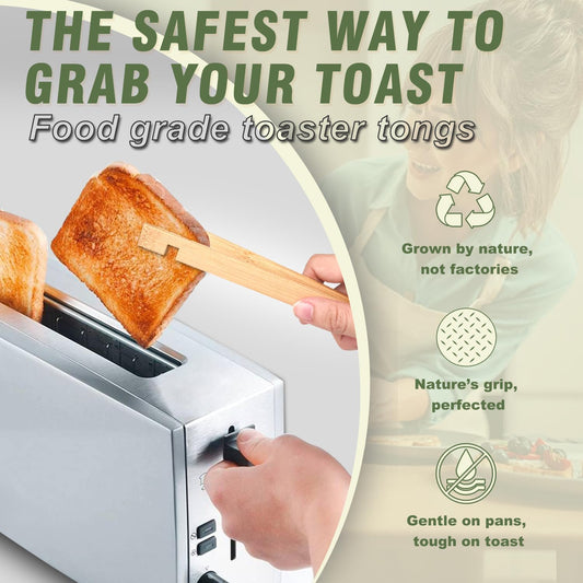 Wooden Tongs - Bamboo Toaster Tongs for Cooking, Bamboo Tongs Ideal for Toaster, Fruits, Bread & Pickles, Kitchen Utensil for Cheese Bacon Muffin - 8" & 10 Inch Long | Set of 2