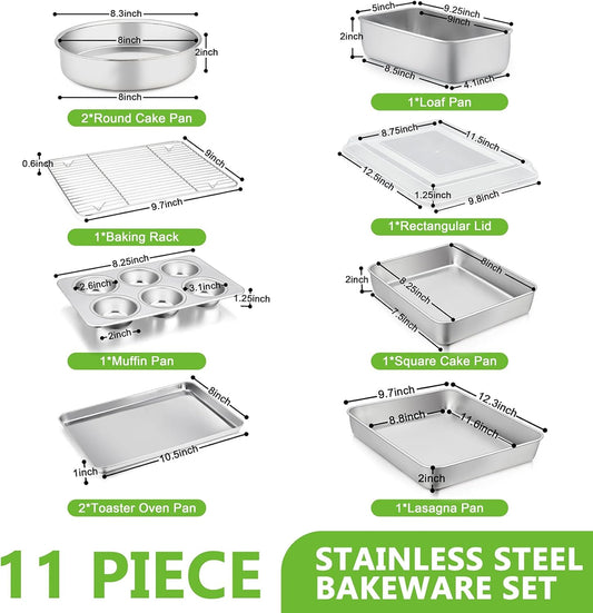 11 Piece Stainless Steel Bakeware Set With Sheets And Rack
