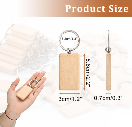 100-Piece Set of Wooden Rectangle Keychain Blanks, 1.2 Inch Unfinished Key Ring Tags for Personalized DIY Crafts and Gift Accessories