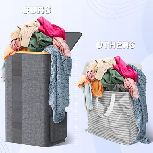 100L Laundry Basket with Lid, Removable Laundry Bag and Handles, Breathable Design Hamper for Bedroom, Bathroom, Dorm, and Laundry Room - Light Grey