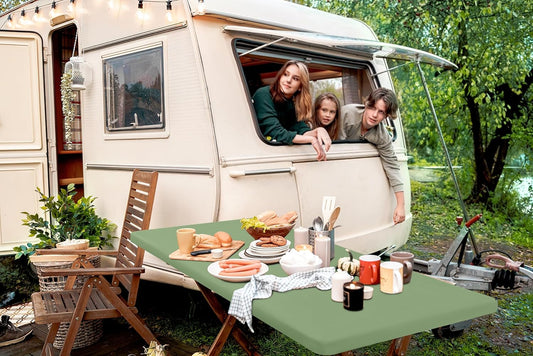 2 Pack Sage Green Waterproof Elastic Fitted Tablecloth
