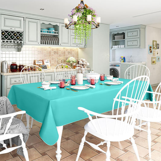 2 Pack Rectangle Vinyl Tablecloth Spillproof Teal 52x70