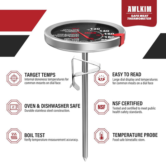 2 Pack Stainless Steel Meat Thermometer, Safe Leave in Oven, 2.5-In Extra-Large Dial Food Thermometer for Cooking, Temperature Probe for Baking, Steak, Turkey - Kitchen Gadgets - Black