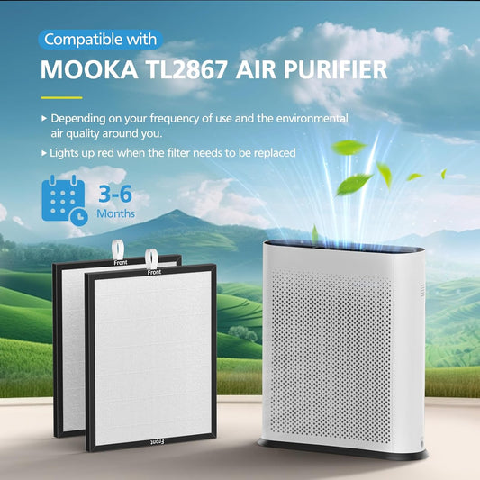 2 Pack TL2867 Filter Replacement Compatible with MOOKA TL2867 Air Purifier for Home Large Room 1650Ft² HEPA Filter for Pets Smoke Dust Pollen Dander Odor PM2.5 for Bedroom