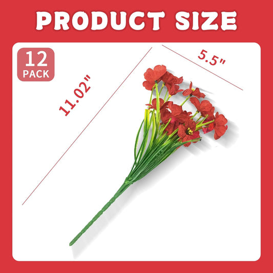 12 Bundles of Red Artificial Orchids - Fade-Resistant Plastic Flowers for Indoor and Outdoor Decoration, Ideal for Hanging Planters, Gardens, Porches, Window Boxes, Homes, Weddings, and Farmhouses