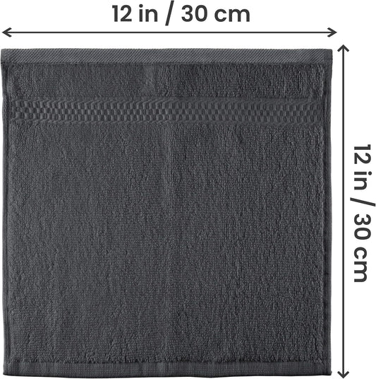 12 Pack Premium Wash Cloths Set, 12 by 12 Inches, 100% Cotton Ring Spun, Highly Absorbent and Soft Feel Washcloths for Bathroom, Spa, Gym, and Face, Grey
