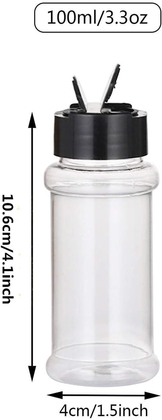 12 PACK - 3.3 Oz Plastic Spice Jars Bottles Containers with Black Screw Lids to Pour or Shake - Perfect for Storing Spice, Herbs and Powders - Lined Cap - BPA Free
