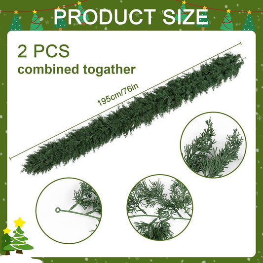 2Pcs Artificial Cedar Garland Real Touch Winter Pine Seasonal Christmas Greenery Garland for Table Mantle Background Wall Decorations (2, 6.4 FT)