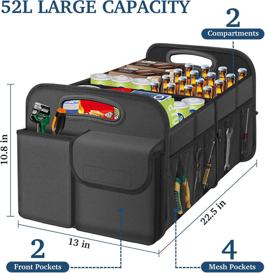 Car Trunk Organizer with Large Capacity Waterproof Car Accessories for Women & Men, Collapsible Trunk Organizer for Suv/Jeep/Sedan (Black, Standard)