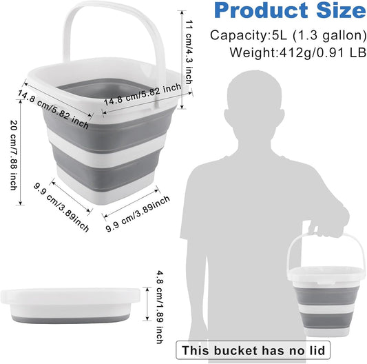 Car Wash Bucket 5L, Collapsible Bucket for Cleaning Supplies, Folding Mop Buckets Water Storage Containers for Camping Gardening Finishing Beach Outdoor RV Sink Wash Basin Ice Tub Swamp Emergency Prep