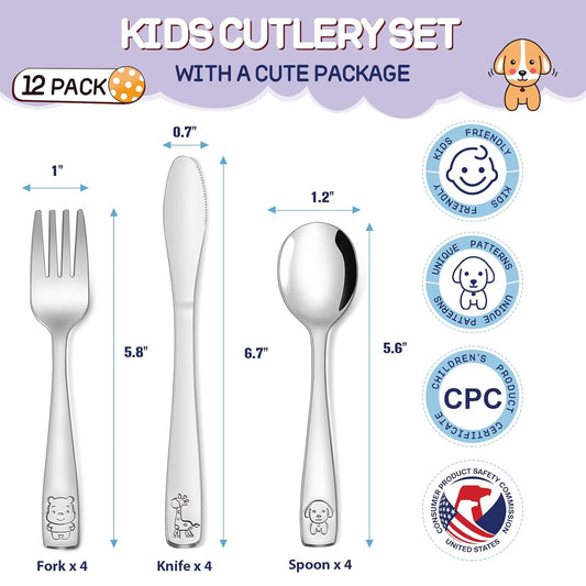 12-Piece Toddler Utensils, Stainless Steel Kids Silverware Set, Children Safe Forks, Spoons and Knives - Mirror Polished, Dishwasher SafeVendor:BodPeaceRegular price $40.99 USDRegular priceUnit price / per$0.00 USDSale price $40.99 USD