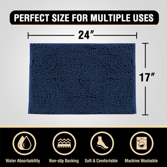 Bath Mat Bath Rug for Bathroom Luxury Chenille Bathroom Rug Mat Extra Soft and Absorbent Microfiber Shaggy Rugs Non Slip Rug Quick Dry Bath Mat Washable, 17 X 24 Inches, Navy