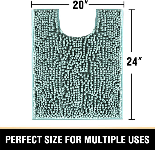 Toilet Mat U Shaped Bathroom Rugs Bath Mats for Bathroom Non Slip Luxury Chenille Bath Mat U Shape 20X24 Extra Soft and Absorbent Shaggy Rugs Washable Dry Fast - Aqua Foam