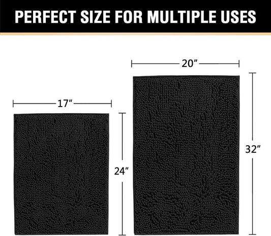Black Bathroom Rug Set 2 Piece, Bath Mats for Bathroom Floor, Super Thick Soft Shaggy Chenille Bath Mats Machine Washable, Dry Fast Water Absorbent Bath Mats(20" X 32"/17" X 24")