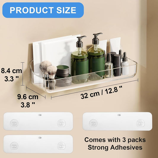 2Pc Acrylic Wall Mount Organizer, Adhesive Shelf, Bathroom Shelves for Wall, Self Adhesive Organizer, Shower Caddies, No Drilling Hang Wall,With 3Pack Tapes, for Bathroom, Kitchen, Living Room