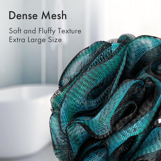 Shower Sponge Loofah Back Scrubber, PE Soft Mesh Loofah Body Scrubber with Long Wooden Handle, Bath Sponge for Men Women (Black)