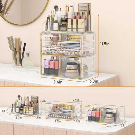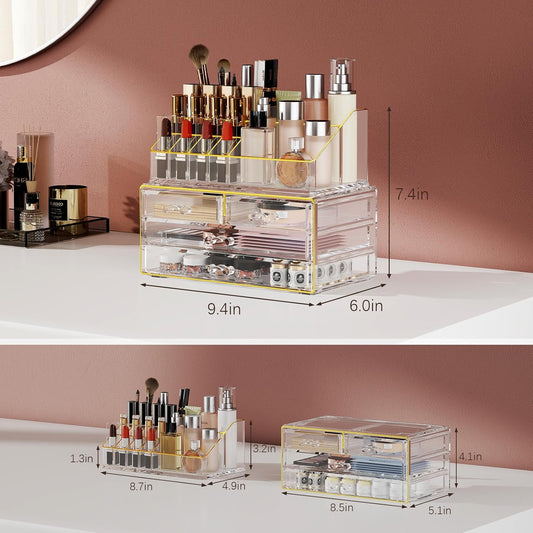 2Pc 4-Drawer Makeup Organizer Countertop Cosmetic Storage for Vanity | Bathroom | Skincare | Perfume Storage, Casual Pairing No Assembly, Ideal Gift for Women, Clear with Luxe Gold TrimVendor:BodPeaceRegular price $45.99 USDRegular priceUnit price / per$62.99 USDSale price $45.99 USDSale