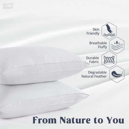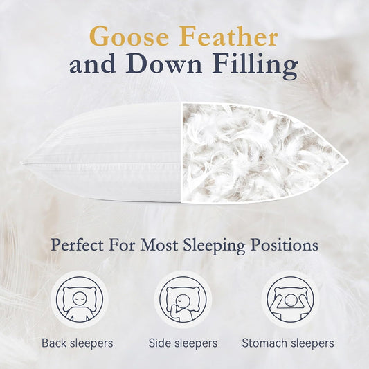 ® Goose Feather down Pillows, Standard Size Soft Bed Pillows for Sleeping with 100% Cotton Shell Set of 2