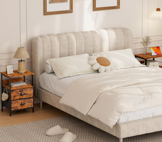 Nightstands Set of 2, Night Stands with Charging Station, Side Tables with 2 Fabric Drawers, End Tables with Storage Shelves, for Bedroom, White