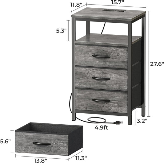 27.6-Inch Nightstand with Integrated Charging Station, End Table with USB Ports and Outlets, Bedroom Night Stand Featuring Fabric Drawers in GreyVendor:BodPeaceRegular price $90.99 USDRegular priceUnit price / per$122.99 USDSale price $90.99 USDSale