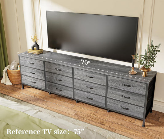 70-Inch Grey Dresser and TV Stand for 65 to 80 Inch TVs with 12 Fabric Drawers, Large Storage Organizer for Bedroom and Living RoomVendor:BodPeaceRegular price $236.99 USDRegular priceUnit price / per$319.99 USDSale price $236.99 USDSold out