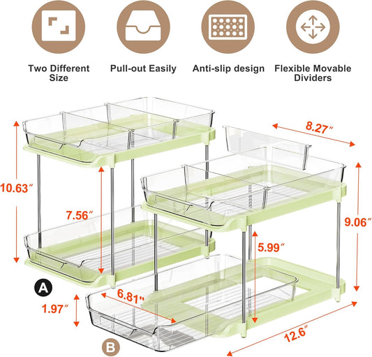 2 Sets of 2-Tier Multi-Purpose Bathroom under Sink Organizers and Storage, Stackable Kitchen Pantry Organization, Pull Out Medicine Cabinet Organizer with 8 Movable Dividers, GreenVendor:BodPeaceRegular price $83.99 USDRegular priceUnit price / per$113.99 USDSale price $83.99 USDSale