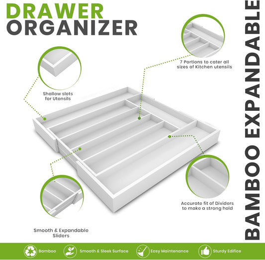 Expandable Bamboo Utensil Drawer Organizer, Silverware Organizer for Cutlery, Flatware Holder (5-7 Slots, White) - Pack of 1Vendor:BodPeaceRegular price $47.99 USDRegular priceUnit price / per$64.99 USDSale price $47.99 USDSold out