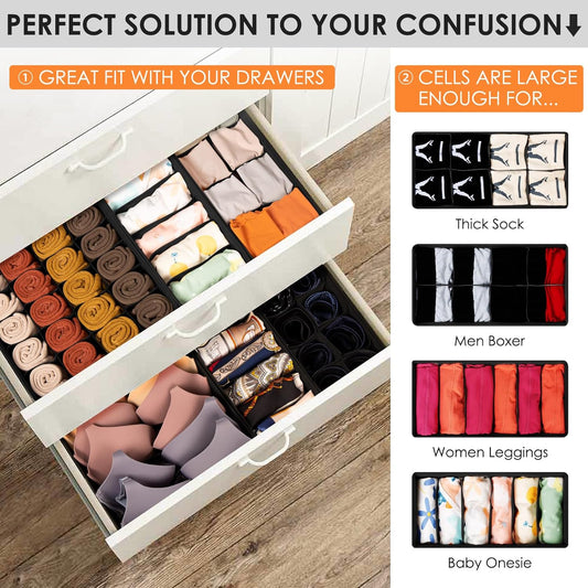 12 Pack Sock Underwear Drawer Organizer Dividers, 116 Cells Fabric Foldable Dresser Closet Organizers and Storage Bins for Baby Clothing, Women Men Underwear Socks, Bra, Ties, ScarfVendor:BodPeaceRegular price $69.99 USDRegular priceUnit price / per$0.00 USDSale price $69.99 USD