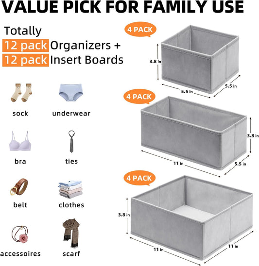 Drawer Organizer Clothes 12 Pack -Dresser Organizer Bins for Closet Bedroom - Baby Clothes Organizers and Storage for Nursery Organization -Drawer Organizer Divider for Sock Underwear-GreyVendor:BodPeaceRegular price $68.99 USDRegular priceUnit price / per$93.99 USDSale price $68.99 USDSale