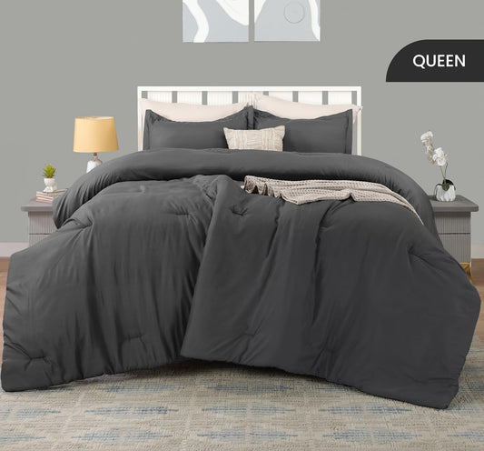 Queen Comforter Set Grey, Comforters Queen Size 3 Pieces Bedding Comforters Sets, down Alternative Soft Bed Set, 1 Comforter (88 X 88 Inches) 2 Pillow Shams (20 X 26 Inches)