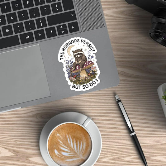 Pack 3PCS 3 Inches - the Horrors Persist but so Do I Sticker, Vintage Raccoon, Woodland Animal Stickers, Waterproof Vinyl Stickers for Laptop Water Bottle Cars Phone Case Decal Decor Stuff Gifts