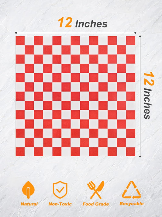 Red Plaid Wax Paper 12x12 Nonstick Hamburger Patty Wrapping
