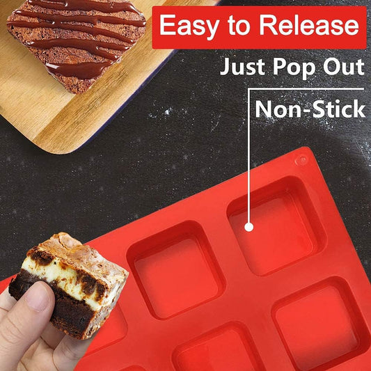 Silicone Brownie Pan, 9-Cavity Non-Stick Square Baking Pan, Perfect for Brownies, Cornbread, Muffin and Cakes, BPA Free and Dishwasher Safe